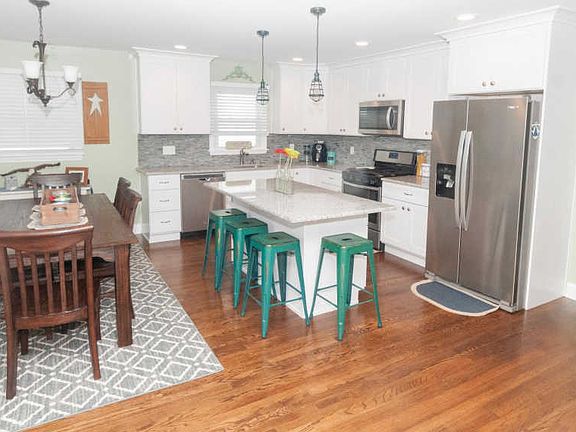 Everything old is new again! Within the past two years, this Raised Ranch has been rebuilt from the inside out. The front of the house was reconfigured to give you an Open Concept between the living room, dining room, and kitchen. The kitchen was gutted and rebuilt to include granite countertops with a stunning backsplash, stainless steel appliances, white cabinets, and an island with bar stool seating for four. The spacious new full bath has gorgeous tile work, new fixtures, new flooring and lighting and a granite/wood vanity. The hardwood floors throughout the living room, dining room, and all three bedrooms have been refinished. New ceiling fans were installed in all bedrooms, the living room and dining room. The interior was completely repainted -- including the beautiful mural in the nursery. The walk-out basement was cleared out and painted and is ready to be finished. It already includes a convenient half-bath and an office which could be used as a fourth bedroom, a playroom, or anything else you need. The screened-in porch needs minimal work to restore it back to its former glory. The roof is brand new. The electric was updated to 200+ amps and all outlets and switches were replaced. Grab your toothbrush and move in. The hard work has been done!