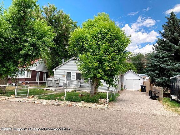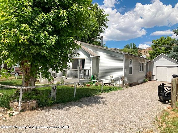 A graveled driveway along the east side of the home leads to the garage and back yard.