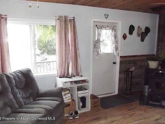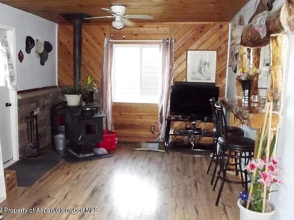All on one level, there are 3 bedrooms, a full bathroom, good sized eat in kitchen, with a pass through custom made log breakfast bar to the living room. The living room has a wood burning stove in one corner to supplement the forced air gas heat.