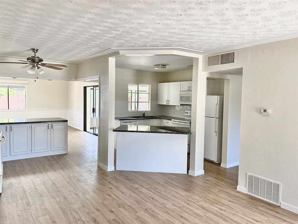 New kitchen, cabinets, appliances,flooring , fresh paint inside and out . unique spacious home, open and bright. Two islands that opens to the large family room, dinning room and the Arizona room which can be used as a 4th bedroom, indoor laundry with lots of storage.This home can easely be a 4 bedroom home, beautiful front court yard with circular drive way, expansive brick works and large driveway for extra parking. Big back yard with citrus trees and large slap area, great for entertaing , wide gate, storage shed. Central location with close approximity to the desirable lower Arcadia area and access to all the major freeways.