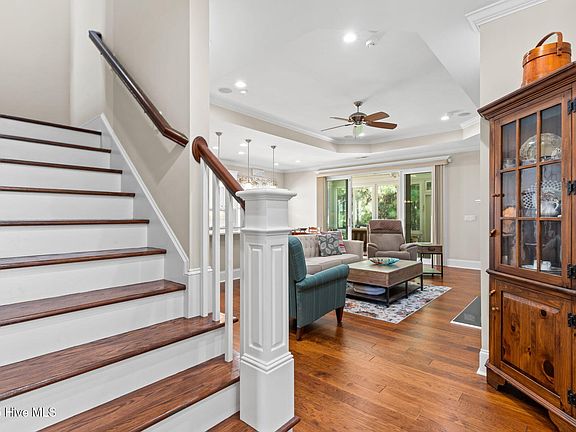 Welcome to 1231 Opaca Drive, a thoughtfully designed, quality built, brick home in the popular Palmetto Creek Community. Once inside this charming home, you'll notice the open layout filled with natural light, beautiful crown molding throughout entire home and attention to detail at every turn. The living room features a tray ceiling, custom built-ins and a cozy gas fireplace. The dining area and kitchen complete the heart of the home - the kitchen shines with granite countertops, a large island, tiled backsplash, and a walk-in pantry. Just off the common area, a spacious three-season room overlooks the backyard, creating the perfect spot for morning coffee or entertaining. The primary suite and all common areas feature engineered hardwood flooring and the primary suite is a true retreat - with enough space for a small sitting area and includes a generous walk in closet. The primary bath includes a tiled shower, jetted tub, dual vanities and plenty of natural light. Two guest bedrooms are located on the main floor at the front of the home with a full hall bath, while a private upstairs suite provides the 4th bedroom and full bath for comfort for visitors. Upstairs there is also walk in attic with plenty of room for storage. Important upgrades to note include a Rinnai tankless gas water heater, roll down screen door for garage door, irrigation system, propane hookup for grilling, whole-home generator hookup, and retractable awning over patio. Palmetto Creek is known for its resort-style amenities, including a stunning outdoor pool, fitness center, tennis and pickleball courts, walking trails and even a kayak launch. Ideally located between Wilmington and Myrtle Beach, this community provides convenient access to shopping, dining and golf, as well as both Oak Island and Holden Beach when you want to put your toes in the sand.