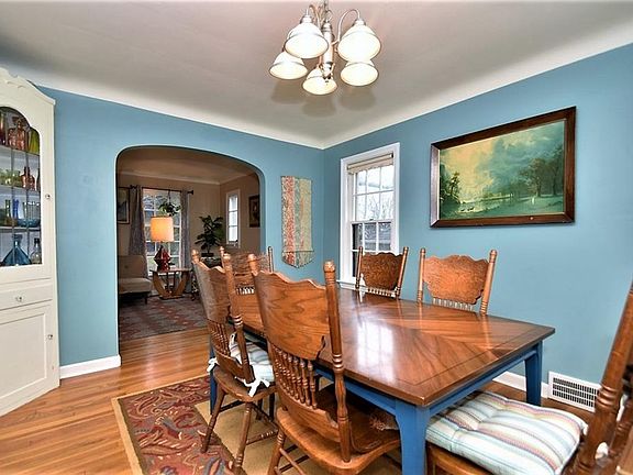 Solid brick Colonial with hardwood floors throughout. Living room is bright and features a classic fireplace and mantle. Dining room leads out to open porch overlooking backyard. Updated, white eat- in kitchen with subway tile backslash, glass front feature cabinets, gas range and newer dishwasher. Guest bath on 1st. Three bedrooms and hall bath on 2nd floor with combination shower/tub. Cedar Closet. Walk up attic with loads of storage. Nicely finished family room in basement with 3/4" paneled walls, fireplace and brand new carpet. Central A/C. Fully fenced backyard is flat. Two car garage with opener. Home recently painted exterior and much of interior. Comes with a Home Warranty from HSA for one year covering appliances and systems in the home. Will be Point of Sale Compliant, by transfer. June Possession.