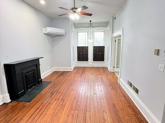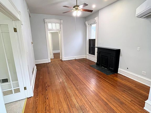 Charming 2 Bedroom 1 Bath apartment in historic building on 4th St in Old Louisville, one block from Central Park. Beautiful hardwood floors, 14 foot ceilings, aesthetic fireplace, and sunny windows in this 7 unit Victorian Mansion. Second floor unit with lots of natural light. Walk-in closet in master bedroom. Kitchen has a dishwasher. Mini split (heat pump) for heating and cooling does great job and keeps utility costs down. Off-street parking for 1 vehicle. No pets. Non-smokers only. Laundry room in basement. Year lease. Owner pays water, sewer, trash. Tenant responsible for gas and electric. Off-street parking for 1 vehicle. No pets. No smokers. Year lease. Laundry in basement. $40 application fee for background and credit check. 620 minimum credit score. Thank you!