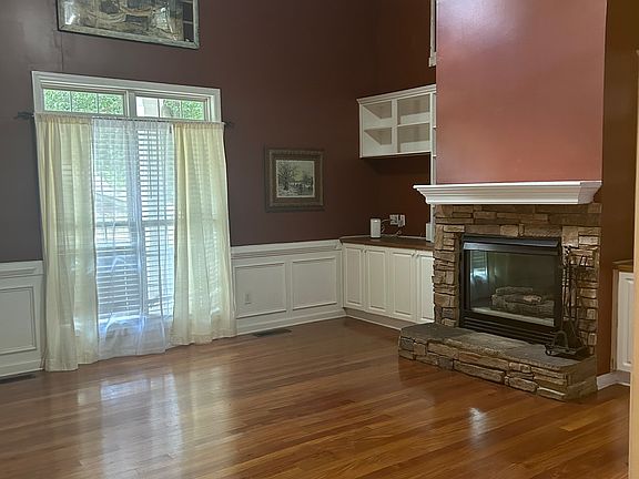 Living room has hardwood floor and fireplace. Rest of the main level has new LVP flooring. Large Eat in Kitchen exits onto large back deck with ceiling fan. New Stove. Wash Room off Kitchen. Home has a large recreation room/bedroom with closet and a full bath on the bottom level with the two car garage and large utility room. This section could be rented out by you to a single person or couple if desired. It has separate entrance. Master with fireplace, huge bath and giant walk in closet on main level. Large Bedroom with double closet, loft with closet and full bath upstairs. All upstairs with new LVP flooring. Fresh paint throughout whole house. LOTS of natural light. New tile and tub in Master Bath. Loft overlooks family room below on main. 3 levels total. Deck across entire back overlooks scenic natural backyard with stream. Stream is fed by an Artesian well. Access deck from kitchen and master. There is a half bath on the main level. Circle drive in front. Second drive to garage. Fenced yard end of house. Rocking Chair front porch. Culdesac. One dog under 50 lbs allowed inside. Durable flooring throughout.
