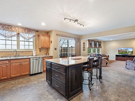 STATELY STONE FRONT AND 40ft. PORCH WELCOME YOU TO THIS HOME ON ALMOST 1 LEVEL ACRE! An open floor plan and walk-out game room are just a few of the things you'll love. The impressive 7ft. center island breakfast bar w/quartz top is the star of the kitchen. It's surrounded by maple cabinets, stainless appliances & pantry. Enjoy the openness to the large family room. Other first floor features are formal dining room, formal living room (currently home office), laundry room & powder room. Upper-level master has private bath, dual vanity, shower and large soaking tub & 2 walk-in closets - one is 12x11 (would make a great nursery, sitting room or office). 3 spacious bedrooms w/great storage and a 2nd full bath complete this level. There's a walk-out lower level game room + a room framed for a bath. Large 2 car garage & 42ft. storage room. Huge level yard w/shed. Custom deck over 20ft w/great views & access to kitchen & family room. Extra parking. Great location, just blocks to County Park!