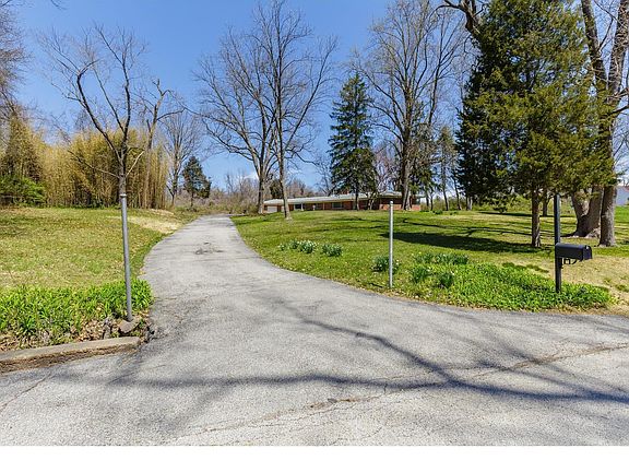 Sprawling 2600+ all brick and vinyl ranch home on 5.85 acres just waiting for your personal design. Take a drive to enter a Brick and stone entry. Large great room with brick wood burning FP opens to separate dining & family room with bay bow window & brick side wall. The huge kitchen has center island & breakfast room. All very light & bright to watch morning wildlife. Dining room has french doors to oversized patio. Nice sized master suite with private bath. Three other bedrooms with nice sized closets. Large hall cedar closet & hall bath completes the main level. Basement is huge with one area with work benches. Access the basement from garage stairs or interior stairs. LL has brick wood burning fireplace to create that perfect man cave leaving a ton of space for recreation room. Over sized 2 car garage. Property is suitable for horses & has no HOA. Gorgeous lot with privacy, room for a garden, or build a pole barn. Sold "AS IS" this private haven is waiting for you.