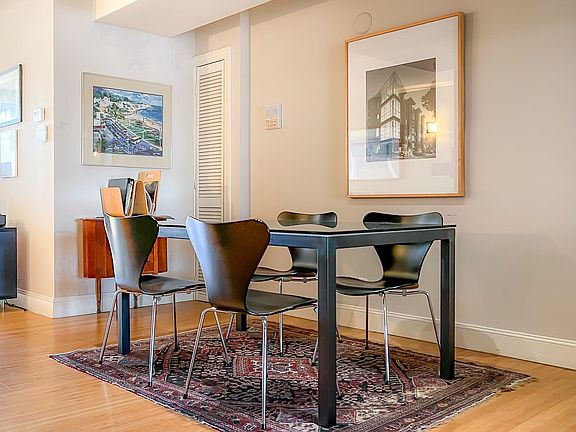 Three-unit building that includes a shared roof deck with views of the Golden Gate Bridge, the apartment features bamboo floors, contemporary furnishings, and artwork that reflect the tastes of its architect-owner. A modern kitchen with granite counters and stainless steel appliances also includes a side-by-side washer and dryer.