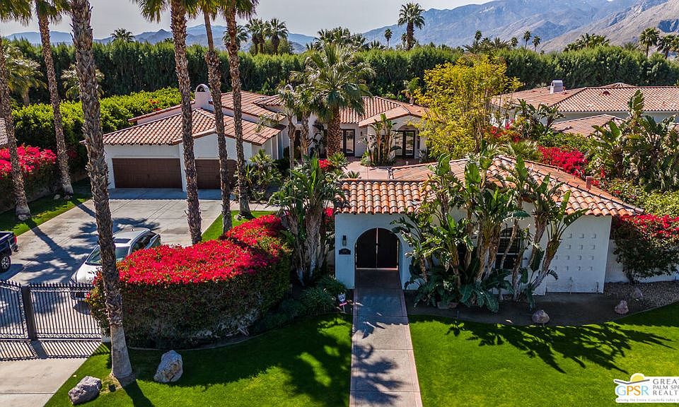 Welcome to The Colony At El Mirador , one of the most highly sought after developments in Palm Springs. This gated property is situated on one of the largest interior lots in all of the development with over 22K square feet. One has to view this property to understand the sheer magnitude of the front and rear yards both with expansive sweeping views of the San Jacinto Mountains. The main house features 3 bedrooms, 3.5 baths, office, family room and living room and formal dining room. From the moment you enter the gorgeous front door into the rotunda entry way, you will be captured by the warmth of this spectacular floorplan. Formal living and media/ den both with gorgeous fireplaces and high-volume ceilings. A Chef's dream kitchen with stainless steel appliances, large island and walk in pantry, make this the perfect home to gather friends and loved ones. This long-term owner has maintained this home meticulously. Large Primary bedroom features an oversized bathroom with double vanities and a large walk-in closet with custom built- ins. Do not miss the detached large casita (4th bedroom) with updated bath. Oversized rear yard with massive pool and spa with large deck area - great for those summer pool parties. Low maintenance yard with lush green turf. Property is being offered unfurnished. Some furniture is available separately outside of escrow. Make your appointment to see this spacious well designed home today.