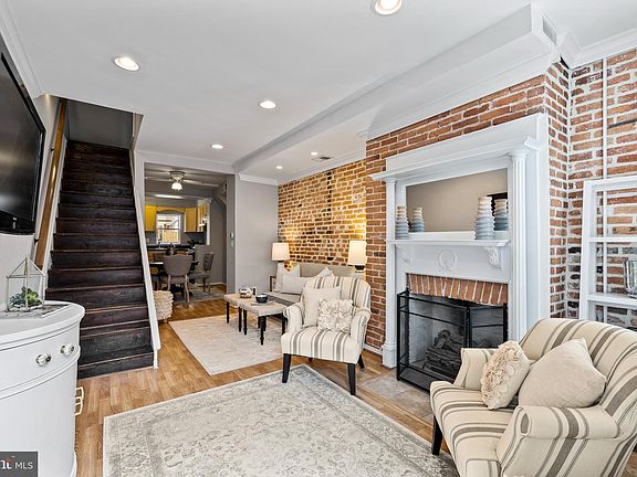 Beautiful home with 4 finished levels on a lovely, centrally located block in Federal Hill. The home has exposed brick, recessed lighting, and custom built-ins and moldings. The main level shows nicely, with an open living and dining room layout, kitchen, main level laundry, and access to a private outdoor space right off the kitchen with lots of potential. The lower level is a nicely finished space that could be used as a bedroom, and has an updated full bath, fireplace, and walk out entrance in the front. With a few updates, it could be a studio or efficiency space. On the second floor is a primary bedroom with fireplace and full hall bath. The top floor is a loft like space, with 2 good sized rooms and exposed beams. This space would be ideal for a bedroom plus home office. This location is an easy walk to Federal Hill and Riverside Parks, all the wonderful shops and restaurants of Federal Hill and McHenry Row, and allows easy access to I-95 and all the major commuter routes. Walkability to Inner Harbor, great afternoon light, and free, first come first serve parking lot across the street. Don't miss a lot of home for under $300,000!