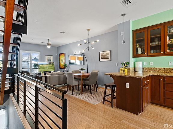 One of Zephyr Gates most desired models! A stunning tri-level townhome offering a seamless blend of contemporary living with utmost convenience. Upgraded beyond Pulte's standard finishes, this home showcases acacia hardwood flooring at its entry staircase & the 2nd floor! There are custom shutters & screens on the windows. There is even a 240v dedicated outlet in the garage for car charging (EVSE). An abundance of natural light accompanied by LED light fixtures brighten the interior of this open flowing floorplan. All home upgrades & Pulte's original construction features are in immaculate condition. Bamboo flooring, maple cabinets & granite counters, new appliances. Exposed beams, steel railings & floating wood treads create this sought-after Zephyr Gate interior staircase which is highlighte by an overhead skylight. The West-facing balcony is a welcoming atmosphere to house a BBQ. The two-car tandem garage has storage, laundry & interior access. Minutes from Pacific Pipe, Prescott Night Market, Target, Safeway, Trader Joe's & Emeryville Bay Street. Close proximity to BART and West Grand freeway access, allowing you to skip the traffic & directly to the Bay Bridge toll plaza making this a commuter's DREAM. Majority of furniture to be included in sale. 1231WoodSt.com