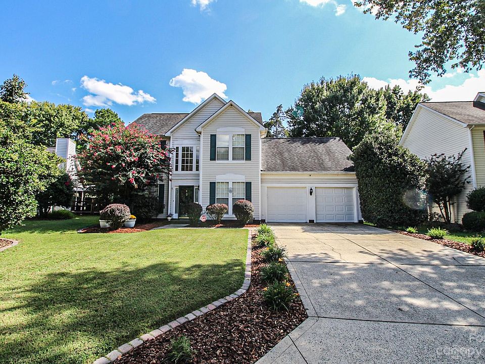 Your Blakeney gem is finally here! The beautifully manicured lawn brings beckons you inside to the sweeping foyer, where the spacious den and dining room greet you. The perfect living area, accentuated by a cozy fireplace, seamlessly flows into the chef's kitchen adorned with a central island. With cabinet and countertop space for days and a well-appointed computer desk, this area will not disappoint. The second floor reveals generous secondary bedrooms, a large bed/bonus, and the primary bedroom, complete with tray ceiling & ensuite with soaker tub and stand-up shower. The massive screened-in porch will be your favorite spot for those fall nights to come. The tastefully designed grilling area with pavers sets the scene for those weekend BBQs. The expansive backyard, with two sheds, covers your storage. Don't forget the two new garage doors just installed. Highly rated schools, close to all shopping and dining, and minutes from everything. Welcome to your next chapter! Welcome home!