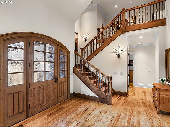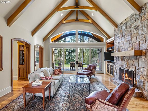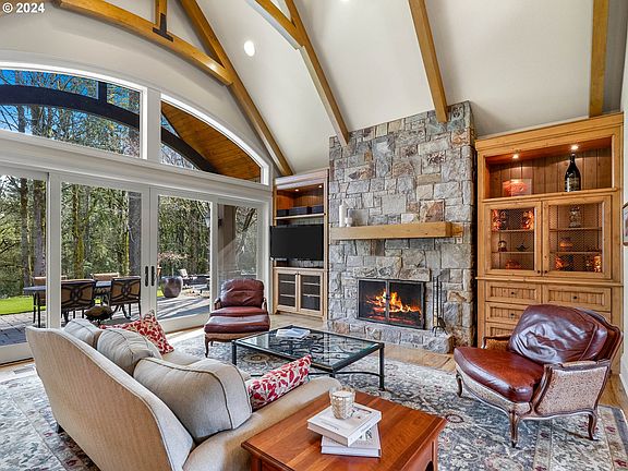 This elegant home was built and designed with quality materials and timeless style. The rich wood and stone exterior provides an immediate sense of craftsmanship. As you enter the home hickory floors and loads of mill work greet you and usher you into the warm and cozy greatroom which boasts a wall of windows/doors to take in the majestic Oregon setting. This elegant, yet very comfortable, home has a fantastic main-level living floor plan with a gracious primary suite and office on the main floor, plus a cook's dream kitchen that includes a Viking 6-burner+griddle gas range, double ovens, double dishwashers, double sinks, and a Sub-Zero refrigerator. The upper level includes 2 bedrooms with private bathrooms, a bonus room or 4th bedroom with a half bath and a 2nd office. The care and design detail is unmatched with material selection from Pratt and Larsen tile, solid alder cabinets and custom fixtures give this home a unique and tasteful edge that you don't often find. Comfortable living was a key component of the design, so to provide even temperature control throughout the house, you will find 2 heating-A/C units, one system for the main level and one system for the upper level. The convenient location offers an intimate neighborhood setting with fantastic privacy, large patio spaces, a fire pit with a seating area around it, and an artificial turf backyard. The home backs to a greenspace overlooking Forest Park, which offers miles of hiking trails through the 5200-acre park. You have easy access to downtown Portland, Beaverton and Hillsboro all within 20 minutes. [Home Energy Score = 4. HES Report at https://rpt.greenbuildingregistry.com/hes/OR10226436]
