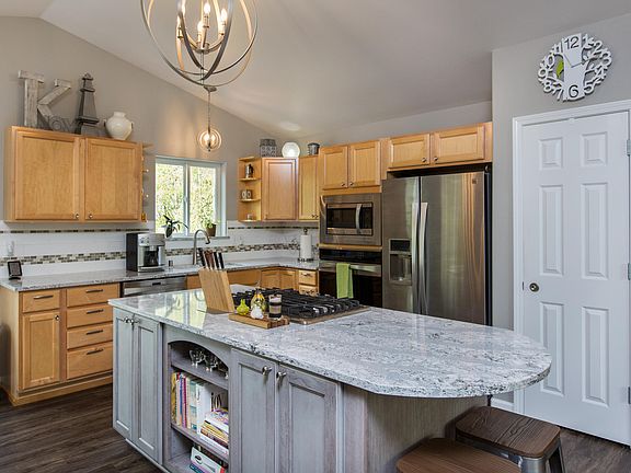 The landscaping on this ''like new'' home includes special rock work on gravel driveway. Loads of light- solid flooring- 2 west facing decks. Upgrades throughout!