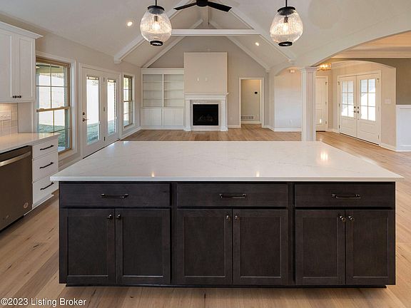 Fabulous brick & stone Ranch located in The Woods At Landherr. Great one story plan that has it all! A MUST SEE! This four bedroom, three full bath gem has over 3,000 square feet. This home comes with custom hardwood floors, tiled bathrooms (must see) and laundry room, covered back exterior patio, and a first floor primary suite. Check out the upgraded trim work! Wow. It has a 2-car garage and a finished lower level that is great for entertaining which includes a Bonus Room / office and bedroom. This home features eye-catching vaulted living room and kitchen ceilings, complete with a custom stone fireplace, bookcases, a spacious eat-in kitchen with functional island, and a formal dining room with tray custom ceiling. The eat in kitchen has beautiful quartz counter tops as well. A must see.