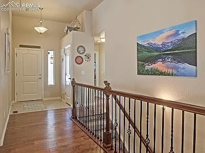 Can it get any better than this ~ BREATHTAKING views of Pikes Peak, Air Force Academy including the Chapel & a birds eye view of the Thunderbird Fly Overs. It can get better ~ ACADEMY DISTRICT 20 schools & CORNER LOT. This floor plan was featured in the 2015 Parade of Homes for its 5 BEDROOMS, 3 BATHS, Gas fireplace, 2 car attached garage, including a MASTER 5-piece, OPEN CONCEPT + 37" X 20" lower level FAMILY ROOM. SHOWS like NEW & with a true decorator's eye. Wood floors, extra tall ceilings, over-sized Master Suite w/ such an inviting reading nook & WALK OUT to deck, upgraded vanities, NEW WATER HEATER, AIR CONDITIONING, and DISHWASHER. The backyard is so inviting with the deck, pergola, concrete patio. Curb appeal is gorgeous with stone accents on the exterior. Both refrigerators are included in the sale.