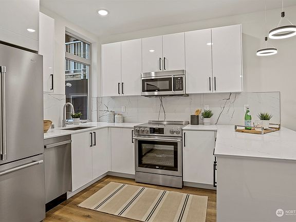 Incredible value & opportunity! Local luxury builder of premier residences, Dima Homes, presents modern residences with superior quality & design. Spectacular in-city location, steps to all the area cafes, restaurants, shops, schools and parks. Convenient to Northgate Station, transit, downtown and South Lake Union. Entry level large studio space for third bedroom/private business/media center/rental,etc! Light,bright open floor plan with oversized windows and high ceilings throughout. Assigned off-street parking EV ready! Open kitchen with plenty of cabinet/counter space, peninsula and European appliance package. Two upper level bedrooms. Sleek, modern hardware and lighting. Balcony off main living level.