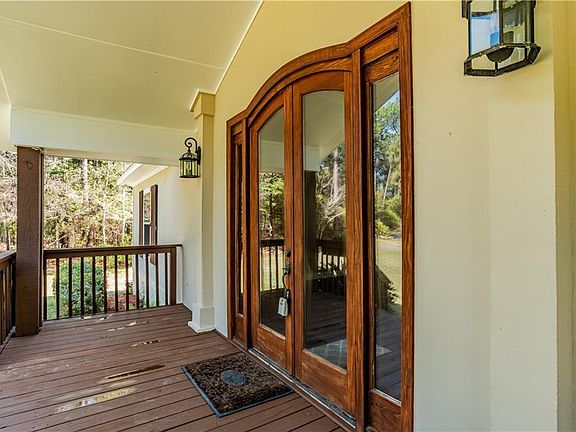 This amazing home welcomes you to come and enjoy time relaxing on the impressive covered front porch while having an ice-cold drink on warm summer days. You will feel transported to an island oasis when entering the oversized custom double front doors but the welcome doesn't end there. Notice the attention to detail, architectural touches and light, airy feel throughout due to the open concept design of the living area which has been updated with luxury vinyl plank flooring and custom cabinetry. This is an entertainer's delight because you can prepare meals while spending time with family and friends inside and then take the party outside through the french doors to the deck. You will have so much space to enjoy grilling, good times and even taking a dip in the above-ground pool. This home has a split floor plan with the master suite being located on one side of the home and a spacious guest room located on the opposite side. The master suite is oversized with a luxurious island-inspired shower, soaking tub, vanity area, and double sinks. This home would be the perfect retreat for a busy executive and would even make a great Airbnb. Located within walking distance of great waterfront views but only minutes away from restaurants, entertainment, and the interstate you will find this uniquely designed home to make your very own. Call your favorite Realtor today!