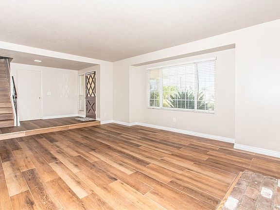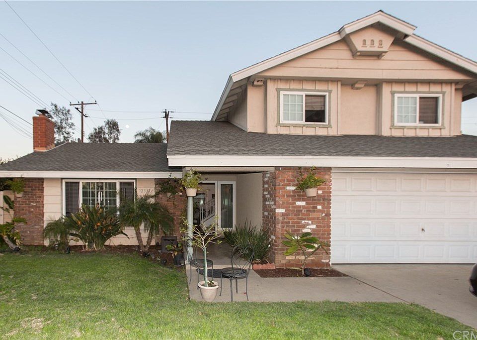 A two story home features master bedroom downstairs and 3 bedrooms upstairs. Freshly painted interior and exterior, and new Wood floor on first level up to stair and through out to walk way. Kitchen's double wall oven and range hood were replaced in 2019; Dishwasher, Water heater, Heating & air conditioner were replaced in 2020; ceiling fans were installed early 2021. Double pane windows throughout. A brick fireplace in the living room and an open kitchen to the family room.It's located on he nice area of Chino R.V. parking. Go and see this home, nice and clean.