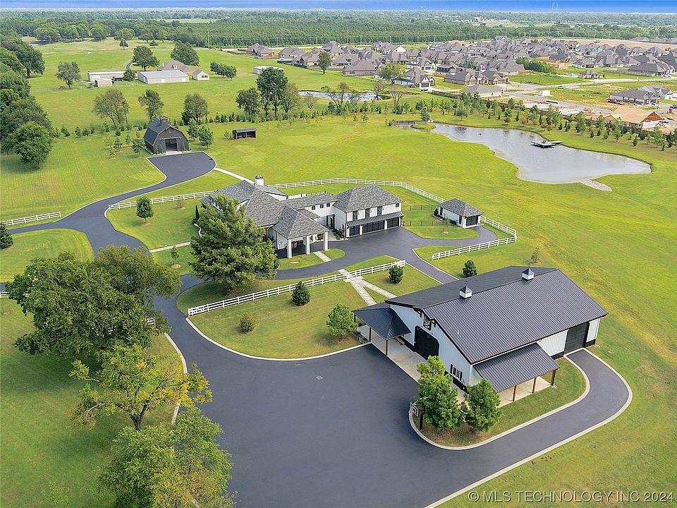 For the ultimate in entertainment, the property features 2 barns; a 4000 sq ft Morton Barn provides space for up to 8 cars, a large bus, or even a boat. This climate-controlled man cave comes equipped with state-of-the-art amenities, including a 120” screen with surround sound, WiFi, and a half bathroom, perfect for hosting unforgettable events. A former 6 stall horse barn has been converted to a gathering space for even more entertainment options. Abundant driveways & sidewalks connect these stunning amenities.Enjoy smart home technology w/ control 4 home automation. Boston Farms offers a lifestyle of unparalleled luxury, comfort and convenience. Seller is licensed broker in Ok & Tx