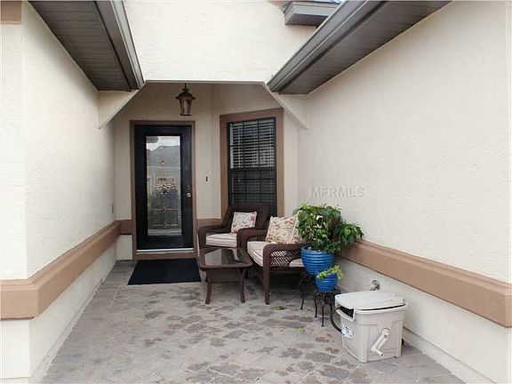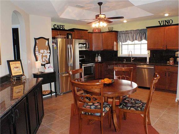 Stunning custom home in Stonecrest is perfect for entertaining with spacious dining room, 16" tile in all the living areas, beautiful laminate flooring in the master bedroom and den. Open floor plan features two sets of French doors to the screened, extended and tiled Lanai, big eat-in kitchen with Merillat cinnamon maple cabinets, granite countertops/backsplashes, Whirlpool Gold stainless steel appliances (French Door refrigerator, convection oven, tall tub dishwasher). You will love the over size d garage, paver driveway, curbing, water-saving Zoysia grass, and living 1/2 block from the pool and pickle ball courts. (Furniture available separately)