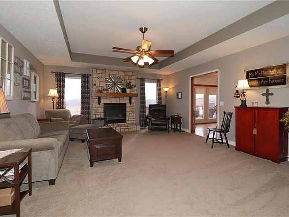 - Features: Carpet, Ceiling Fan(s), Fireplace