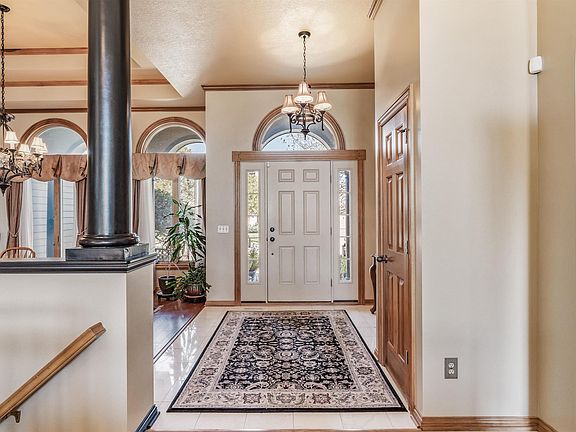 Contingent taking Back Up Offers. Charming craftsmanship exterior displays extravagant arches and pillars highlighting the cozy front porch. The entry wows with the perfect blend of classy design details and functionality. Cathedral and trey ceilings, crown molding, pillars and oversized windows are among the many design features. Ideal living room with gorgeous views and a two-sided fireplace adjoining the hearth room and spacious kitchen. The chef’s kitchen includes all appliances, gorgeous cabinetry, and granite countertops. An elegant deck off the hearth/breakfast nook offers entry into the primary bedroom. A desirable split bedroom floor plan with a primary bedroom boasts a large en suite and walk-in-closet. Bedrooms 2 and 3 are conveniently located with a full bath in between. The lower-level living space amazes with a full bar, third full bath and fourth bedroom. Entertaining is easy with the walk-out level designed with an unparalleled, custom paver patio with views that you will not forget. Call today to make this unique property your home!