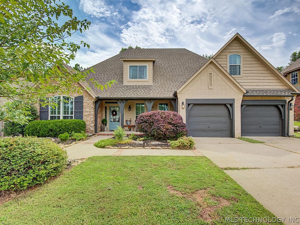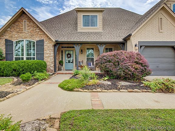 Lovely home in Wakefield Pond which backs up to the peaceful Five Oaks Lodge offers the perfect backyard for peace and quiet. This lovely home features hardwood floors downstairs and large kitchen with granite countertops. There is a large office with built in bookcase and formal dining room. Kitchen is open to the family room and informal eating area for easy entertaining. Large Master Bedroom down with large master bath and closet. Two bedrooms with well-designed pullman bathroom and a large gameroom upstairs. All of this located in the desirable Jenks school district. Great location as it's just minutes away to many shopping, dining and entertainment areas.