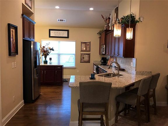 • Kitchen Features: Breakfast Bar, Cabinets Stain, Eat-in Kitchen, View to Family Room, Kitchen Island, Pantry Walk-In, Solid Surface Counters, Other