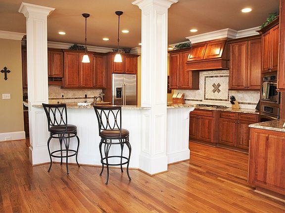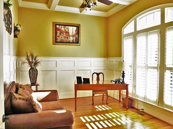 A superbly executed floor plan define this beautiful home located in the North Raleigh's favored The Gates at Ethans Glen. Built in 2008 by Cooper & Rock, and sited on .98 acres with treed privacy - 12313 The Gates Drive offers an amazing lifestyle for those who want to love where they live! Professional landscape and low voltage dusk to dawn lighting welcome you home. Low maintenance brick, stone and fiber cement siding exterior with decorative glass shutters, PVC window pediments and flagstone detailing on drive and front porches. Attention to detail is evident in the custom mill work throughout which includes over sized base boards, 3 & 4 piece crown moldings, tray and coffered ceilings, wood raised panel wainscot, gleaming main level hardwood flooring and more!