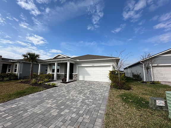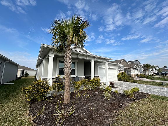 Fabulous, coastal style home on a lake front home site! When you walk in the home, it opens to a large bright kitchen, family room and dining area overlooking the lake. Master bedroom has large walk-in closet, walk-in shower and separate water closet as well as a double vanity. It offers two additional bedrooms with large closets and a hall bath. Tile floors throughout with carpet in the bedrooms. WiFi capable garage door and thermostat that allows you to access your smart home from anywhere. You also will enjoy the clean water from the RainSoft filtration system throughout the home. Two car garage and irrigation. Have your morning coffee on your beautiful front porch or relax on your back screened-in lanai while enjoying the swans on the lake!