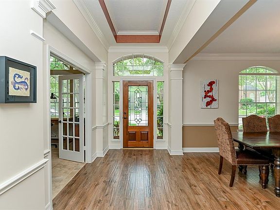Lovely,updated one story home facing a quiet cul-de-sac street. Short walk to one of the beautiful greenbelts. Study with French doors,formal dining room,big family room with two sided fireplace shared with a spacious den/gameroom,2.5 bathrooms. Remodeled kitchen (2018) with new granite countertops,stone backsplash,gas convection oven,5 burner gas cooktop,farm sink,new disposal. Large master suite has a bay. sitting area, and a lavish bathroom with new shower and freestanding soaker tub. Other recent updates include new tile flooring throughout,full interior paint 2018,full exterior paint June 2020,new roof 2016,main AC 2014,radiant barrier in roof and garage,new breaker box 2015. High ceilings,wood blinds and ceiling fans throughout. Relaxing patio with custom cover,beautiful landscaping,sprinklers. Oversized detached garage. Prestigious,gated neighborhood has a impressive clubhouse with tennis courts and a Olympic pool. Many beautiful lakes,24 hour security,playgrounds and more.
