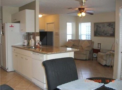 Charming interior location in gated area with top schools Tile laid on a diagonal in living area, laminate wood floors in bedrooms. White kitchen with new refrigerator, glass top range and large breakfast area. Huge screened patio with euro tile. Paver drive, accordion shutters.