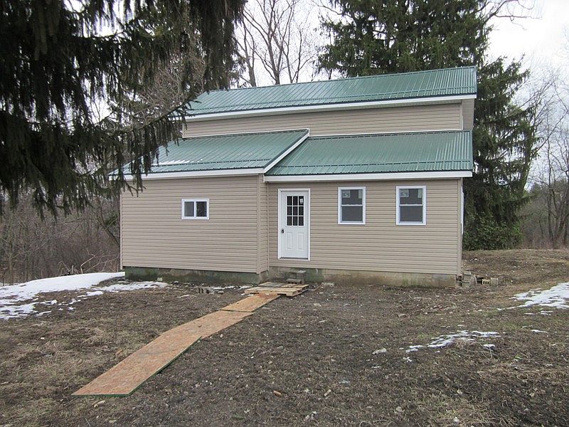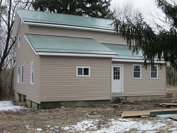 This one has the outside done with new siding and metal roof and waiting to have you to do everything on the inside. All the walls and ceilings are framed out with 2x4s. Just add plumbing and electrical were you want it and put the insulation and drywall up and finish it for yourself or flip it for a nice profit. Sets back off the main road and located on 3 acres.