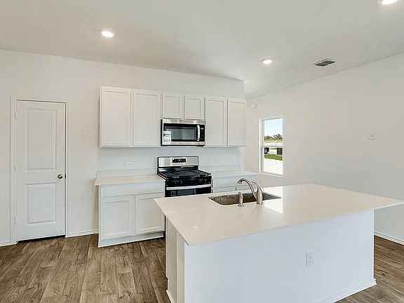 Welcome to your future home in the quiet and growing Durango community of Mustang Ridge, TX! This beautifully designed two-story residence offers 1,846 square feet of thoughtfully laid-out living space, featuring 3 spacious bedrooms and 2.5 bathrooms. Step into a welcoming foyer that leads you into a bright, open-concept kitchen, dining, and living area perfect for both relaxing and entertaining. The kitchen is equipped with quartz countertops, stainless steel appliances, recessed lighting, and a large island, making it the heart of the home. The primary suite is conveniently located on the main floor and includes a generous walk-in closet and a private bathroom with a large walk-in shower. Upstairs, you'll find two additional bedrooms, a full bathroom, and a versatile game room ideal for a home office, playroom, or media space. The home comes with a professionally landscaped yard, full irrigation system, and smart home technology through the Home is Connected package, featuring devices like an Amazon Echo Pop, video doorbell, Deako Smart Light Switches, Honeywell Thermostat, and more. You'll also enjoy move-in ready convenience with included energy-efficient appliances: refrigerator, dishwasher, microwave, washer, and dryer. Additional perks include a 2-car garage, automatic sprinkler system, and close proximity to Del Valle ISD schools like Creedmoor Elementary and Del Valle High School. Located just minutes from Highway 130, commuting to Austin or the surrounding areas is a breeze. Don't miss your chance to live in comfort and style schedule a tour today!