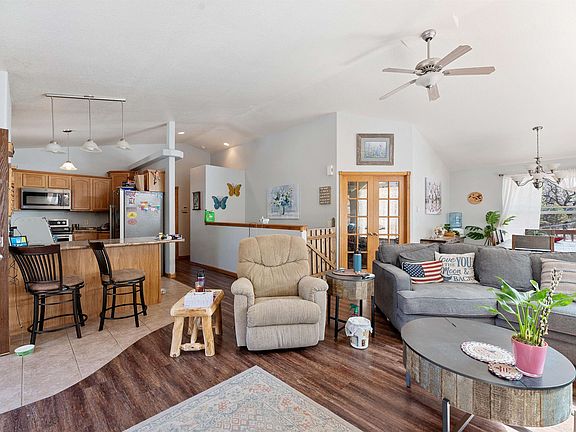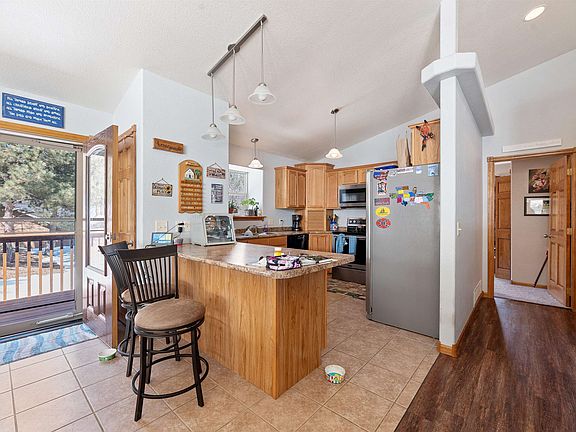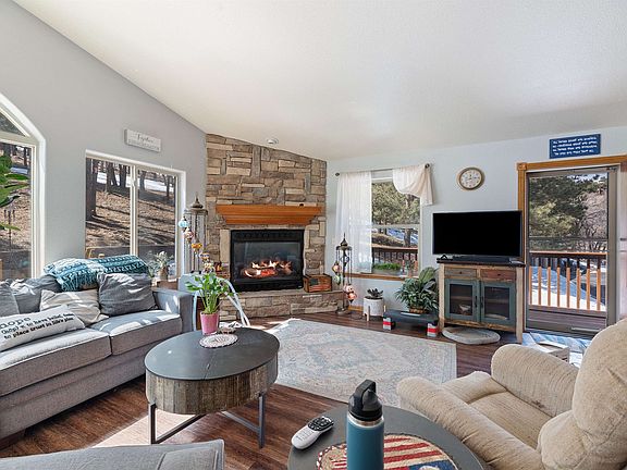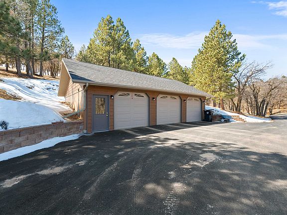 For more information, please contact listing agent Nikkita Kaufmann 605-641-3409 with Great Peaks Realty. Stunning 4-bedroom home in the Hills, nestled on 6.15 forested acres providing a peaceful setting with privacy in Spruce Mountain Estates - just minutes from Whitewood, Spearfish & Sturgis! Enjoy the large wrap-around deck that provides a place to relax or entertain! Fresh blacktop driveway provides plenty of parking and a detached 3-car garage to store all of your favorite outdoor recreation! On the main level, the bright open concept welcomes you inside with a stone hearth fireplace, large windows, stainless steel kitchen appliances, breakfast bar seating, plus a formal dining area with walkout deck access & French doors leading into an office/library space with built-in bookshelves. Master bedroom ensuite is featured on the main level also, with a walkout to the deck, large bathroom offering a jet tub, plus shower, double sink vanities and walk-in closet! The 2nd bedroom is featured on the main level. The spacious walkout basement steps right out onto the driveway for easy entrance. Basement offers a large family room, 2 bedrooms and one full bathroom which all add to the comfort of this great home & ready to be yours!
