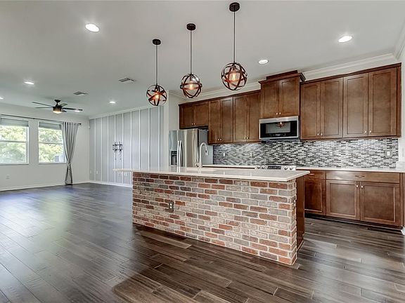 Brick accent islandSpacious loftBonus roomBeautiful backsplashDouble quartz vanitiesQuartz cloud countertopsJack-and-jill bathroom