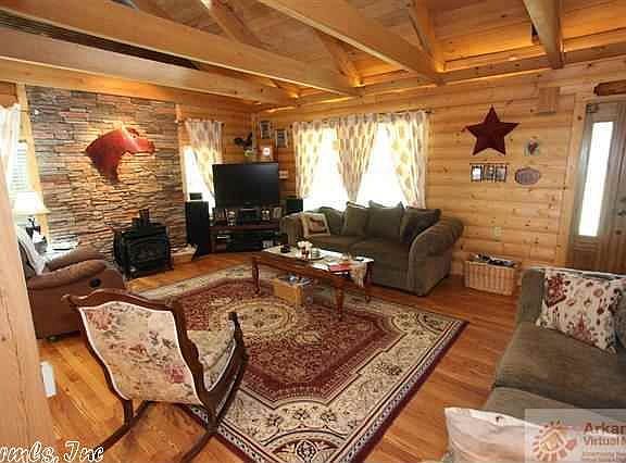 Charming, country home with wrap-around porch with the log cabin feel and touch! Home offers tin ceilings in some areas, tall ceilings, energy efficient, wonderful kitchen, bonus room above garage that serves as additional bedroom, additional kitchen for guests or whoever, quiet living surrounded by wildlife, swimming pool with deck, 2 bedrooms upstairs, master downstairs, central air in huge shop, this is quite a home that deserves you taking a look!!