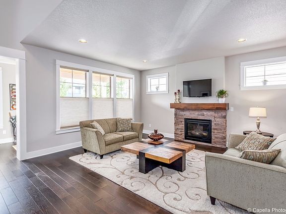Beautiful Bull Mountain Home! Large main level with open concept. Living area features hardwood floors & fireplace. Island kitchen with stainless steel appl, gas cooking, quartz counters, hardwoods, eating bar & adjacent dining area. Full bath and bedroom on main level. Spacious master ste w/walk-in closet, dual vanity,soaktub & ceiling fan. Family room/bonus on upper level. Private fenced yard w/covered patio.