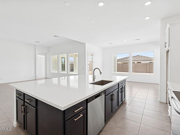 Spacious 3 bed, 2.5 bath, flex retreat, study and 4 car garage; bright, open kitchen with quartz countertops, huge center island, white cabinetry, custom tiled backsplash, family room with tray ceiling; extended covered patio with large backyard; spa-like bath with separate soaking tub and walk-in shower, large walk-in closet, N/S homesite; energy efficient 2x6 construction with extensive new home warranty; NEW HOME.