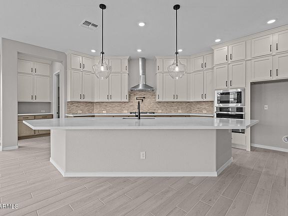 Enjoy light open spaces as well as the best in energy efficiency in this well-appointed home. Soak up Arizona weather on your extended covered patio looking out onto your large backyard. Create memories and new recipes in the gourmet kitchen, complete with a GE stainless appliance, that looks out onto the oversized family room and dining room. The kitchen is an organizer's dream with plenty of cabinet space! This home has space in all the right places with the added bonuses of a retreat, upgraded plank tile and carpeting, gorgeous designer accent tile and much more. 2x6 CONSTRUCTION AND EXTENSIVE NEW HOME WARRANTY.