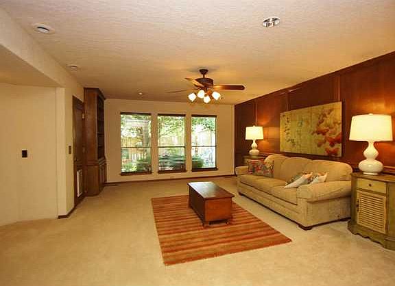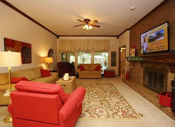 Fabulous one level home in The Greens. Spacious living with fireplace, crown molding, recessed lighting, and surround sound speakers. Beautifully remodeled kitchen with granite, tile backsplash, painted cabinets, updated fixtures/appliances, and large island. This home also features a large den off the kitchen and flex-room that works great as an office or exercise space. Screened in covered patio is perfect for enjoying fresh air. Large guest rooms! Great master bedroom with walk-in closets, double vanities, shower, & tub. Roof replaces in 2013, full gutters, and sprinkler system.