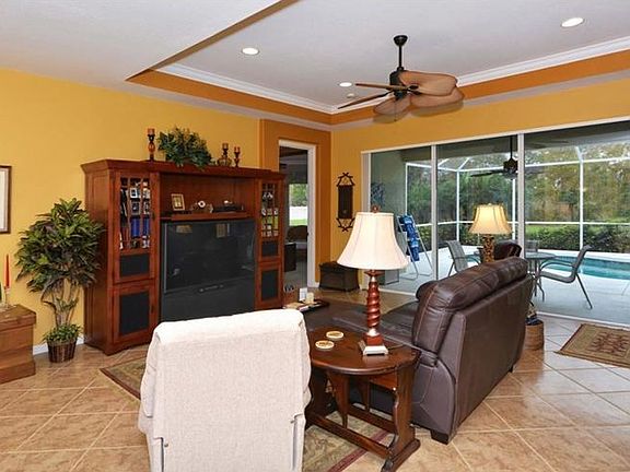This immaculate, single-owner Medallion Homes ST. LUCIA plan will make you feel like you're on permanent vacation! Great open floor plan, featuring a sizable living room, and adjacent formal dining, with tray ceilings and crown moulding in both. This gorgeous home also boasts a den or office with double doors that could be used as a 4th bedroom, as well as indoor laundry. The kitchen is in the center of the home, open to the living and dining rooms, as well as the breakfast nook- great for entertaining! Stainless steel appliances, a breakfast bar, and the double oven make this kitchen a joy to cook in, and the place to hang out for the entire family! The guest bedrooms share a Jack-and-Jill style bathroom with a shower/tub combination. This is a true split plan with a substantial master bedroom that has beautiful views through the large bay windows and a deep walk in closet. The master also has an en suite bathroom complete with double sinks, and a glass "walk around" shower. The pool and lanai is caged, has a covered area with a sink and storage, and overlooks a beautiful lush, green backdrop for private, peaceful enjoyment. Chelsea Oaks offers its residents a small community feeling while still offering many amenities which include a community pool, walking trails, and gated access. This is a fantastic location...close to highly desired Williams Elementary school, the new Fort Hamer Park/Bridge project, and the existing boat ramp!