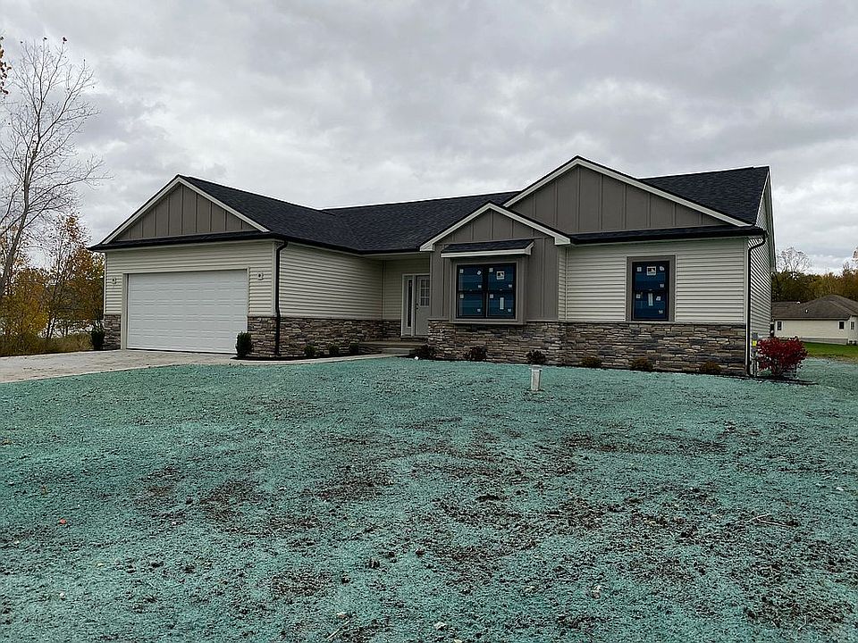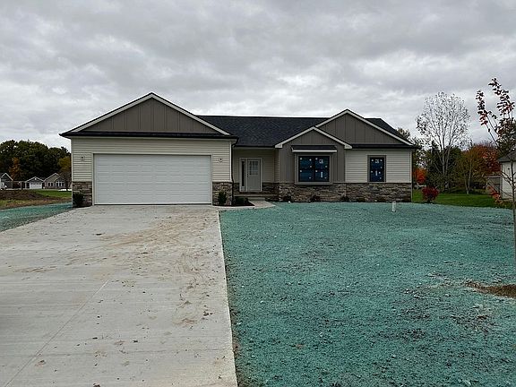 New build Clio schools close to Clio country club. 3 bed 2 full bath with full basement plumbed for 3rd full bath. 9ft ceilings throughout, cathedral in great room and master. White shaker kitchen, oak wood flooring, tile bathrooms, oversize insulated garage. Master complete with walk in closet. Deep well with city sewer. Paved street close to x way yet country setting.