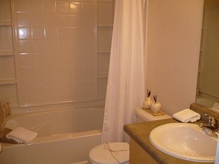 At 721 square feet, the Carlton has an exceptionally large 15'x11' bedroom with two roomy side-by-side closets. Your bathroom features a built-in medicine cabinet, Hollywood style vanity lighting, and a heater with its own thermostat. You will love your fully equipped kitchen with all new appliances, including a space-saving over-the-stove microwave, self-cleaning oven, dishwasher, garbage disposal, and refrigerator. You will have plenty of cabinet space with all-adjustable shelving and a built-in cutting board. Select apartments come with Roman Soaking Tubs. The Carlton offers a large covered patio/deck great for use in all seasons. You will even have your own extra-large capacity washer and dryer! Please call for availability.