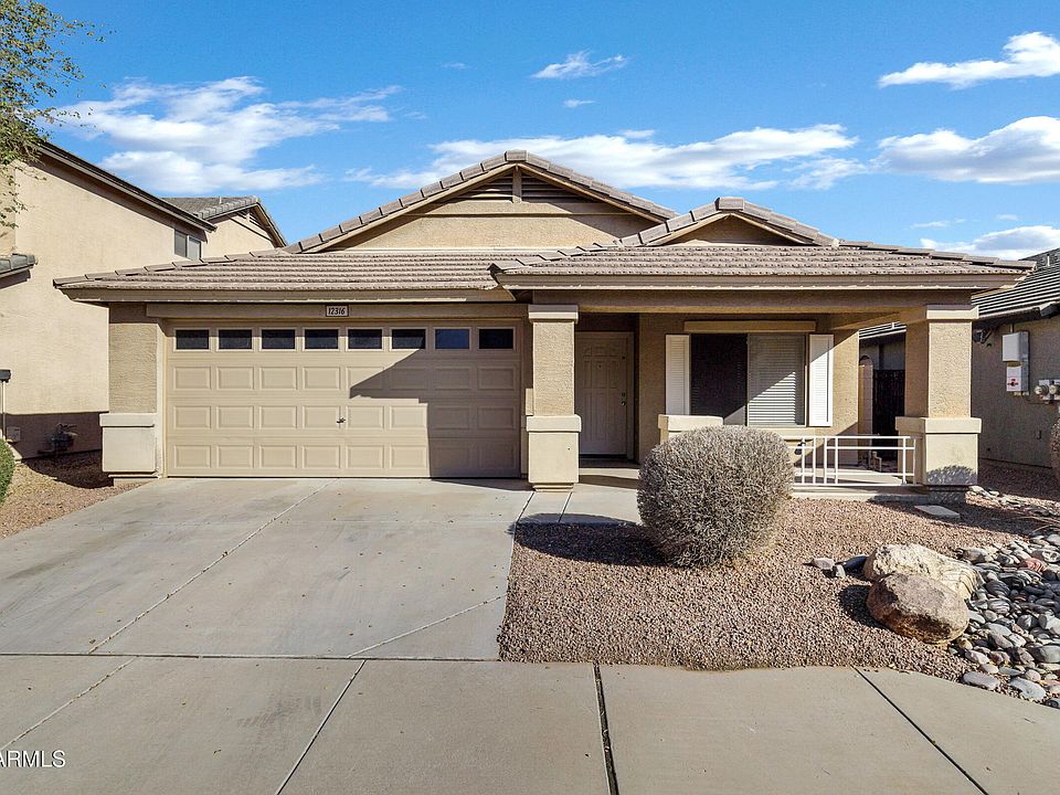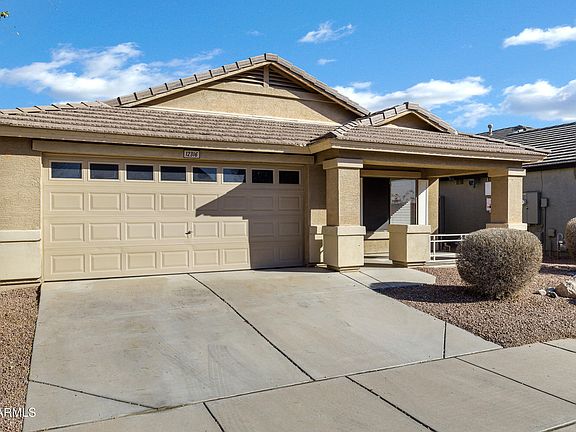 Welcome to this 4-bedroom, 2-bath home in highly desirable Wigwam Creek North, ideally located just a short walk to the community park and L. Thomas Heck Middle School. As you step inside, you'll be greeted by vaulted ceilings and great separation of space that is perfect for daily living or entertaining guests, with plenty of room for everyone to spread out. Fresh paint inside and new carpeting make this home easy to personalize and move right in. The kitchen is functional and spacious, flowing seamlessly into the dining area and living room, creating a welcoming space. The generously sized primary bedroom offers a peaceful retreat with an en-suite bathroom complete with a separate tub and shower shower perfect for relaxing after a long day. You'll also find an inside laundry room with extra storage. Covered front and back patios are an entertainer's dream, providing plenty of space for outdoor dining, lounging, or just enjoying Arizona's beautiful weather. Best of all, you're within walking distance to the community park with plenty of grass and a fun play area. Plus, with easy access to Luke AFB, nearby shopping, dining, Loop 101, Loop 303, and I-10, you're just minutes away from everything you need.