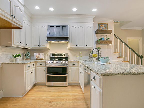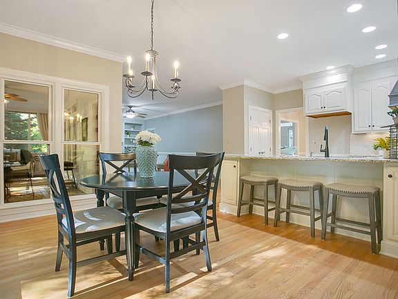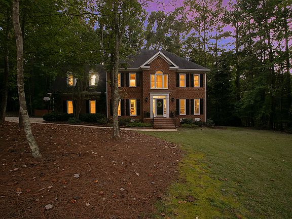 Amazing North Raleigh location for this move-in ready home - with fresh paint an new carpet throughout, the seller has done the prepping for you! Stunning brick front, large fenced/wooded lot, set back from the road for peaceful days and nights at home. Real hardwood floors greet you as you enter the first floor. The kitchen is bright and warm, inviting for gatherings with a dining nook and counter seating plus well-equipped for cooking on your double oven and prepping food while entertaining. First floor gives plenty of space with a full dining room, sunlit office, and large living room with beautiful fireplace and built-in shelves! 4 spacious bedrooms upstairs, including the primary owner's suite with beautiful shiplap wall plus bonus room upstairs complete this home, making it a great space for family and friends. The screened back porch is ideal all times of day with shaded solitude and enough room for everyone! Additional features include a tankless hot water heater, HVAC replaced 2022, and new garage doors in past few years!