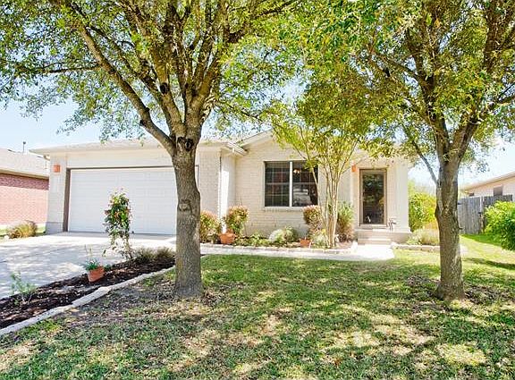 Loved and cared for 3/2 home with water collection system, built-in pest control system, covered patio, hard floors in the main spaces, recent dishwasher and recent garage door. This neighborhood has plenty of amenities! Trails, exercise facility, playground, pool, tennis and basketball courts. 1.3 miles to Bluebonnet Trails Elementary.