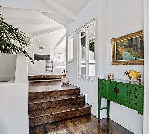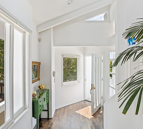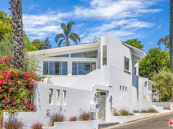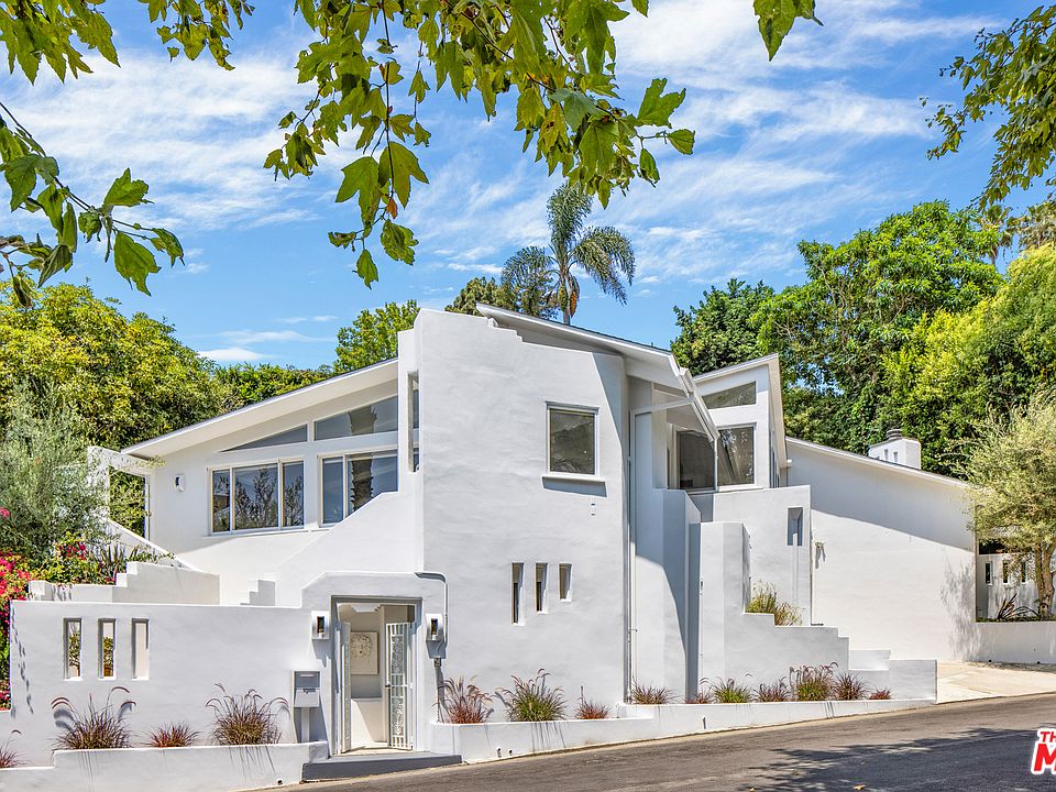 Reduced! Stunning contemporary, originally designed in 1951 by esteemed Modernist architects A. Quincy Jones and Whitney R. Smith. Located on a quiet cul-de-sac in the coveted Crestwood Hills community, this comfortably chic, renovated home boasts open-spaced living areas with vaulted ceilings and oversized windows which highlight blue skies, trees and lush surroundings at almost every glance, resulting in the ultimate zen canyon experience. The recently remodeled chef's kitchen opens to vibrant gardens with a tranquil waterfall. Escape to the elegant master suite with fireplace & bath with separate soaking tub and shower. 2 additional bedrooms and baths in the main home. Detached suite located on a lower level, with 3/4 bath and its own entrance. makes a great office/studio or maid's room. On the upper level of the colorfully planted and terraced gardens, there is a large, flat grassy yard and viewing deck, both with gorgeous views of the verdant canyon beyond. Direct entry garage. Kenter Canyon Elementary School district. Beautiful living.