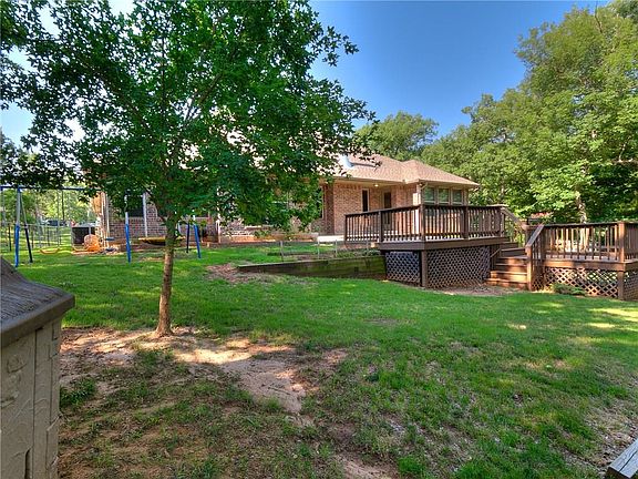 Edmond Schools on 1.24 acres MOL. Amazing and private wooded CUL-DE-SAC lot. Kitchen has granite counter tops, with breakfast bar and pantry. The dedicated office has plenty of room and hardwood floors. The master suite has a deep jetted tub, shower, granite counter top double vanity and walk-in closet. Living room wired for surround sound. 3 car garage includes a storm shelter. Neighborhood park includes a basketball court and pond. A wonderful outdoor setting includes patio and deck surrounded by trees