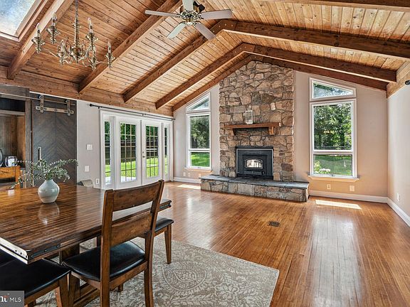 *Multiple offers received.* Stunning 4 bed/2 bath charming and spacious cape cod. One of the most beautiful great room additions in the neighborhood - features stone fireplace with wood stove insert, skylight, lovely wood-beamed cathedral ceiling, glowing wood floors. Open-concept kitchen with lovely travertine tilework, granite counters, stainless steel appliances and white cabinets. Table space in the kitchen. 1st floor offers 2 bedrooms and a bathroom, PLUS a separate den for easy stair-free living (could be turned into a 5th bedroom with the addition of a closet). Upstairs: 2 bedrooms and 1 bath, including big Premiere bedroom with en suite bathroom featuring attractive travertine tile work - this bathroom has a second entry door from the hall for easy access. Sizable FENCED yard with detached storage shed. Two covered porches on the front and back of the house. Bonus concrete pad in backyard just off 2nd set of French doors in the great room. Neutral fresh paint throughout most of the house. This house is truly special & memorable in very good ways :)